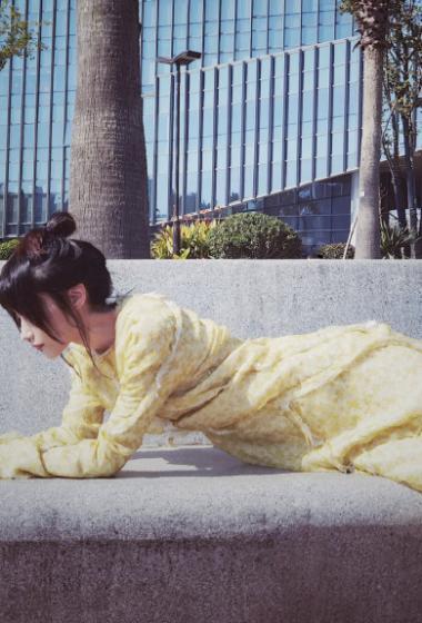 美女田原黄色长袖连衣裙户外酷黑靓丽【12P】